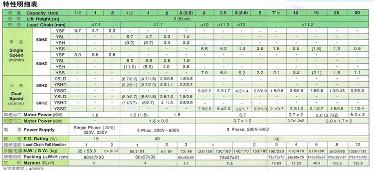 | 臺(tái)灣永升鏈條電動(dòng)葫蘆系列 |